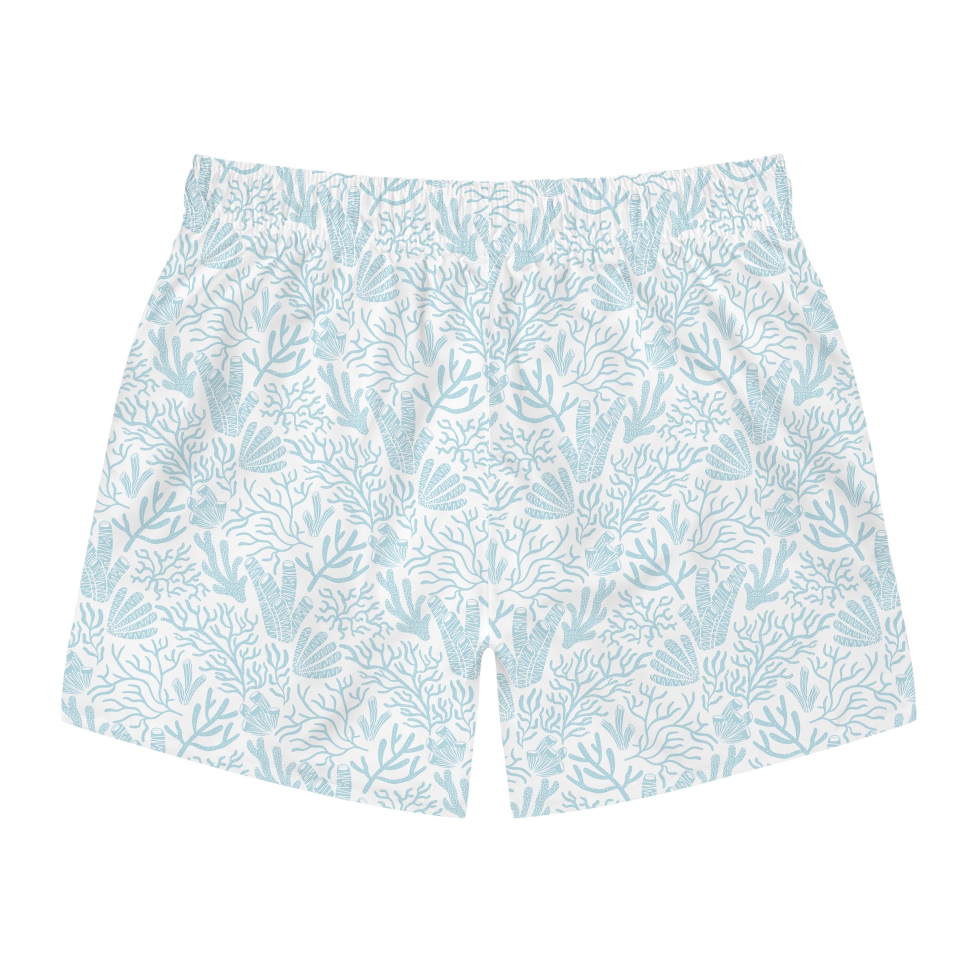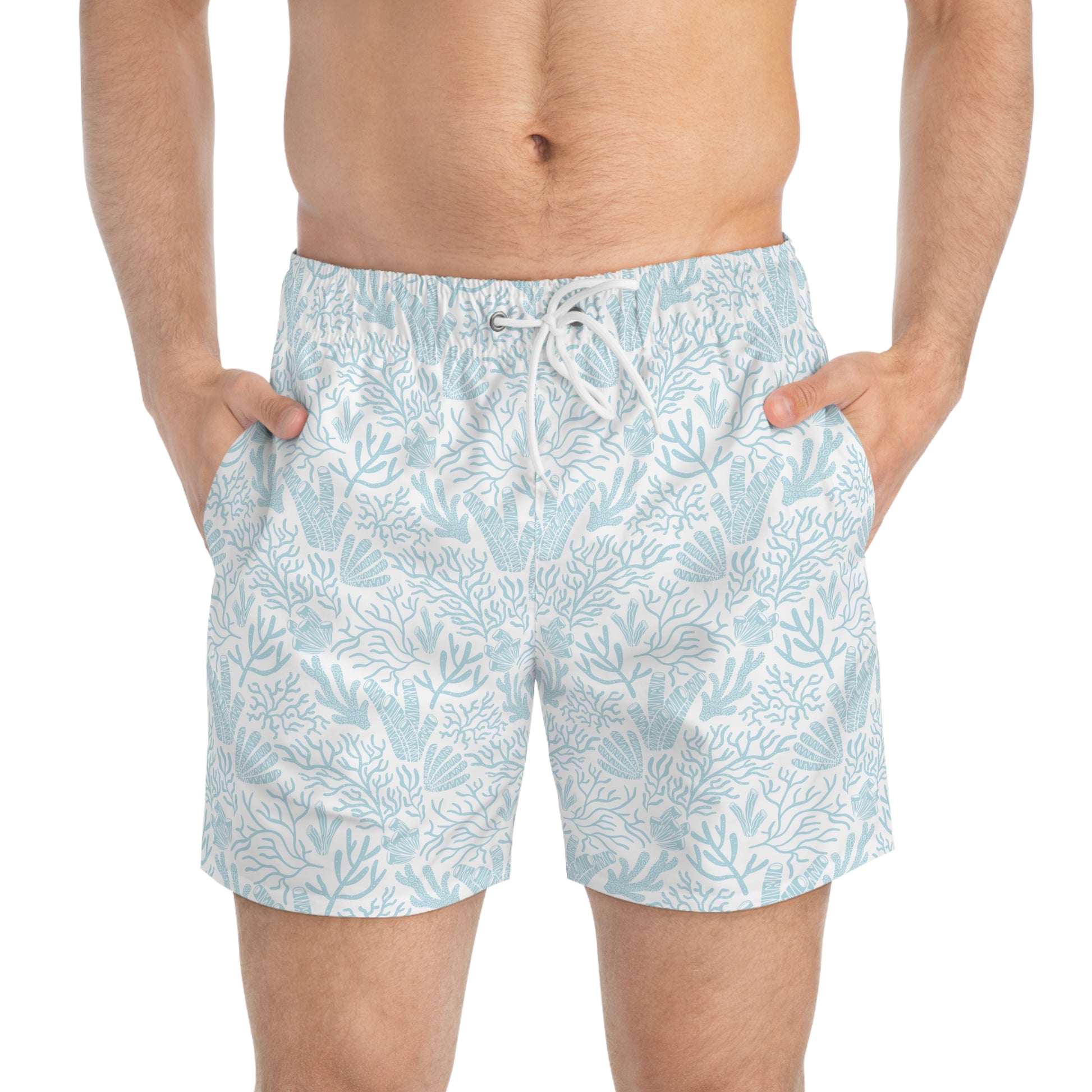 Coral Print Swim Trunks, Summer Beachwear, Men's Swim Shorts, Vacation Suit, Pool Party Essential, Tide-Inspired Swimwear